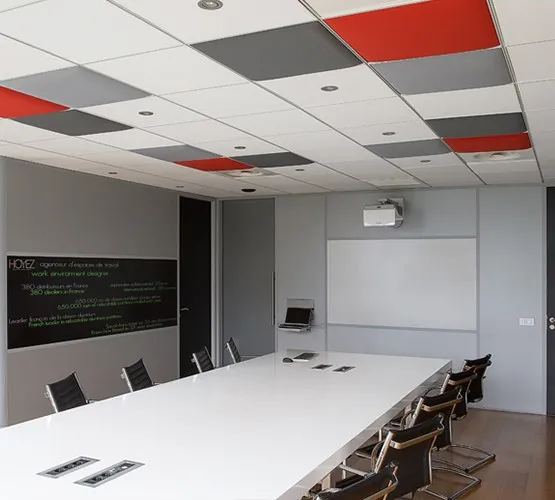 Panneau suspendu avec possibilité d'intégrer de l'éclairage au dessus des postes de travail